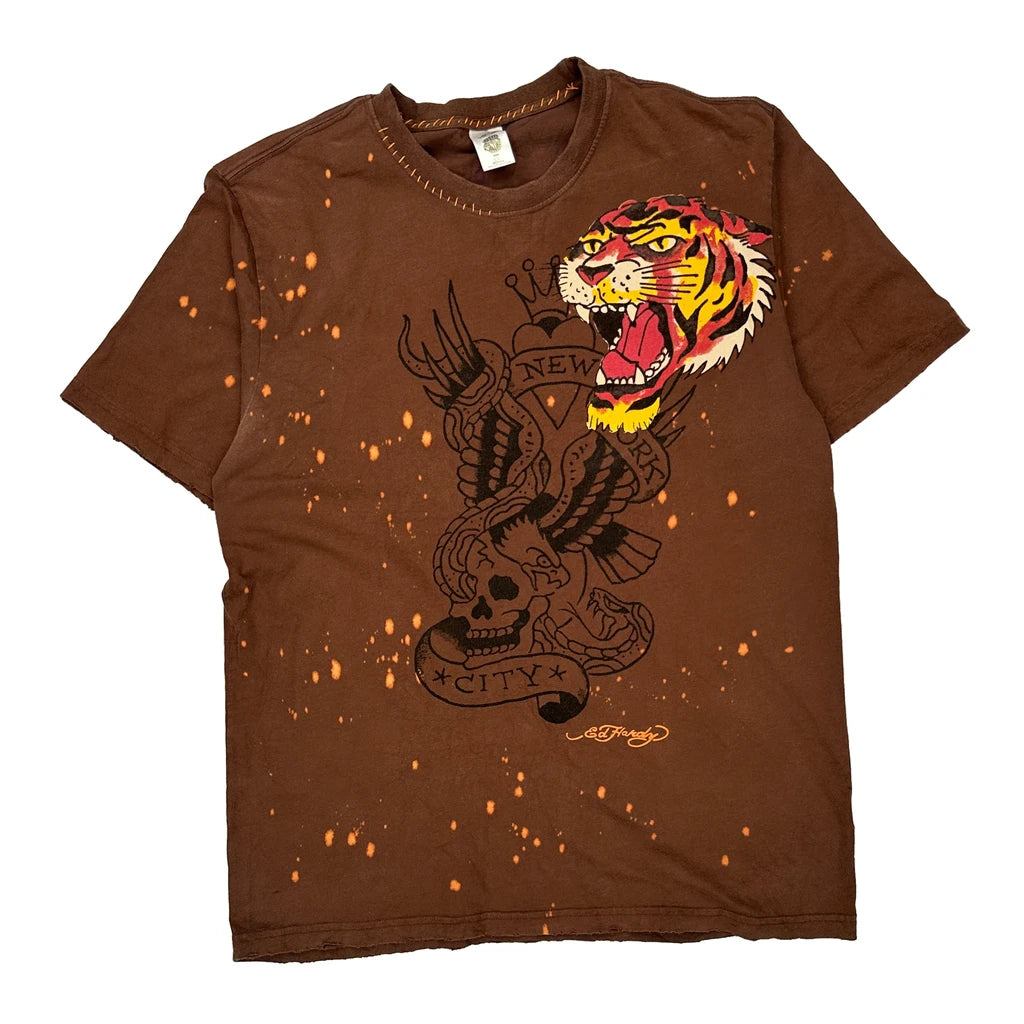Ed Hardy Graphic T-Shirt - XL Brown Cotton