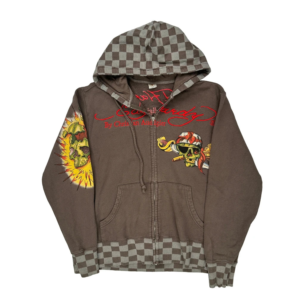 Skull And Pirate Theme Ed Hardy Graphic Hoodie - Small Multicoloured Cotton