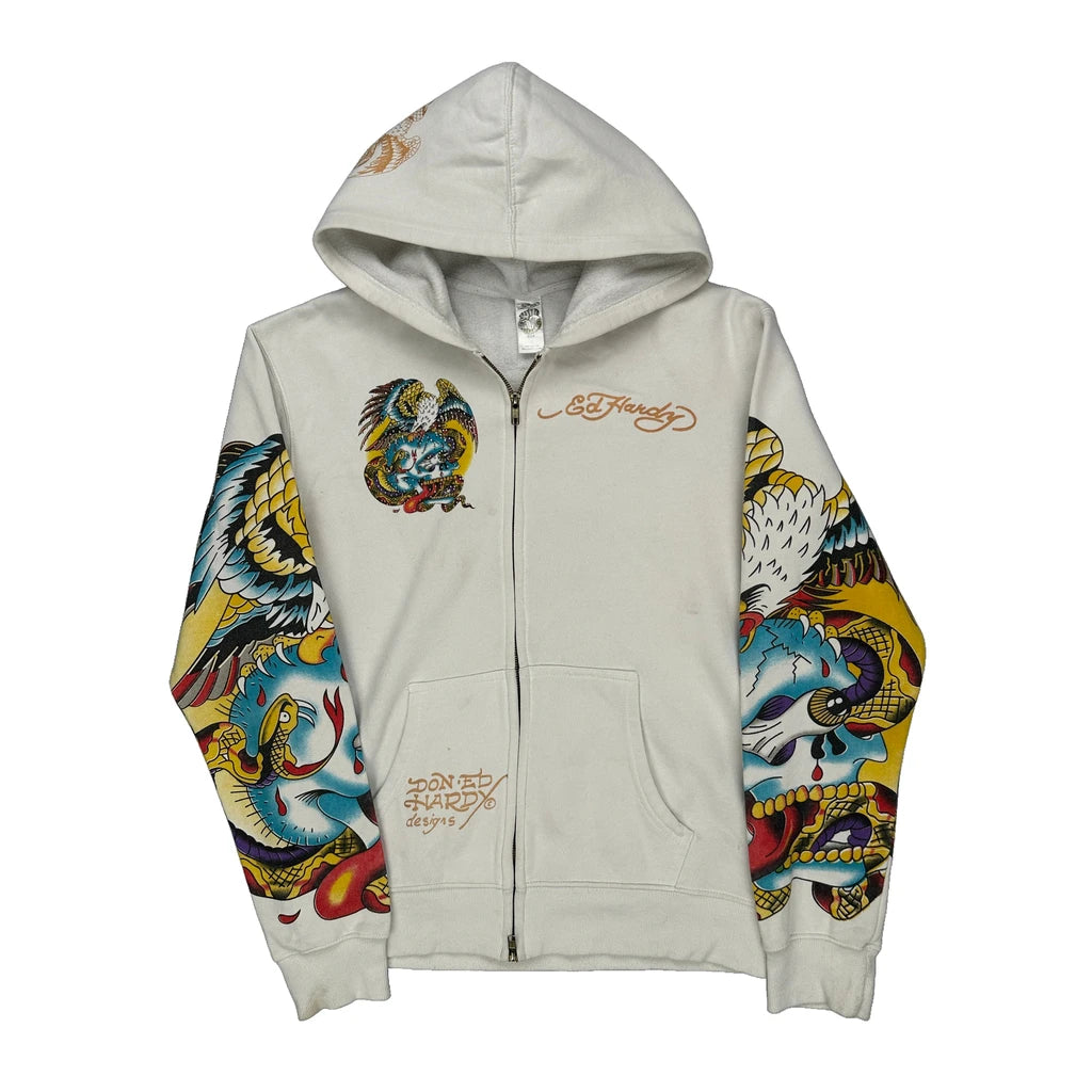 Tattoo-Inspired Design Ed Hardy Graphic Hoodie - Medium Multicoloured Cotton