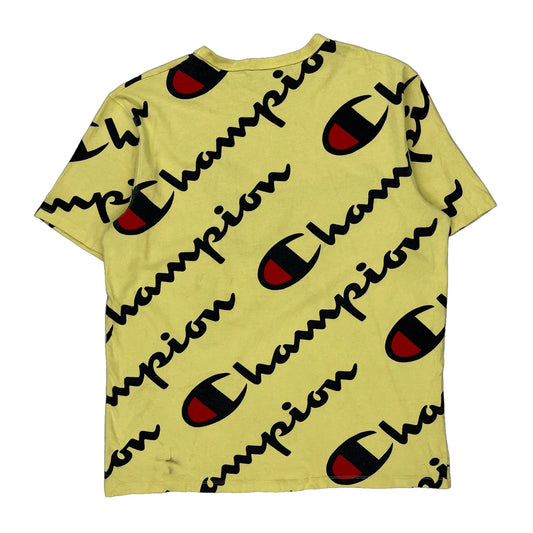 Champion Spellout T-Shirt - Large Yellow Cotton