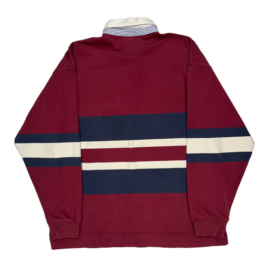 R&R Striped Rugby Shirt - Large Burgundy Cotton
