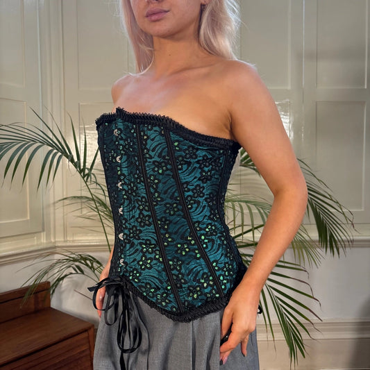 Vaacodor Embroidered Corset - Large Blue Polyester Blend