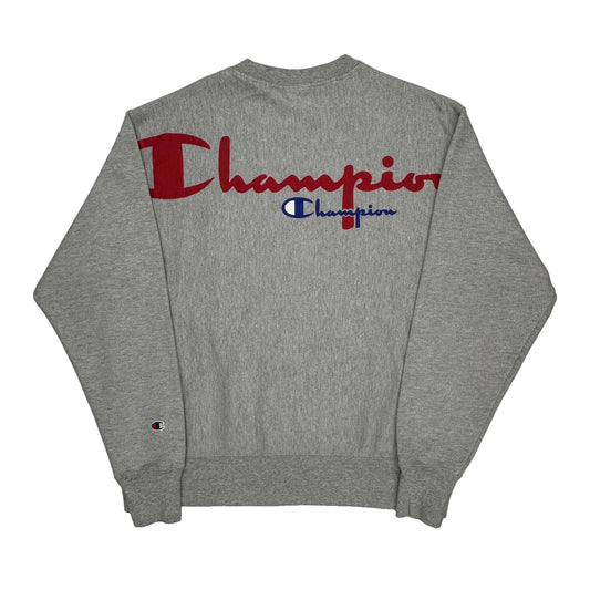 Reverse Weave Champion Spellout Sweatshirt - Small Grey Cotton