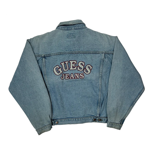 Harley Davidson Patch Guess Graphic Denim Jacket - Large Light Wash Cotton