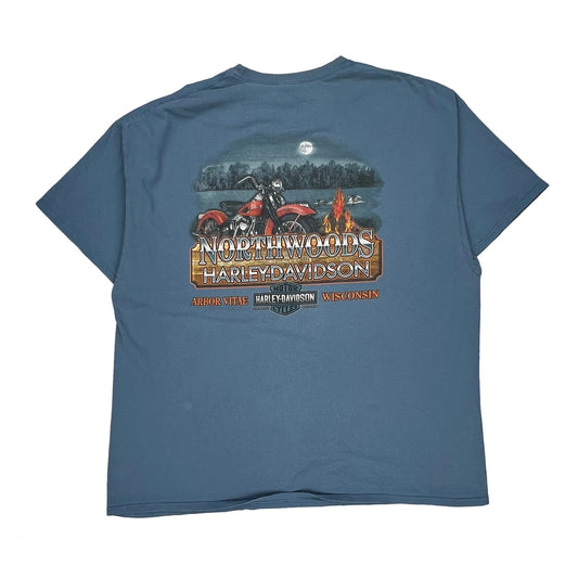 Northwoods Harley Davidson Graphic T-Shirt - 3XL Blue Cotton