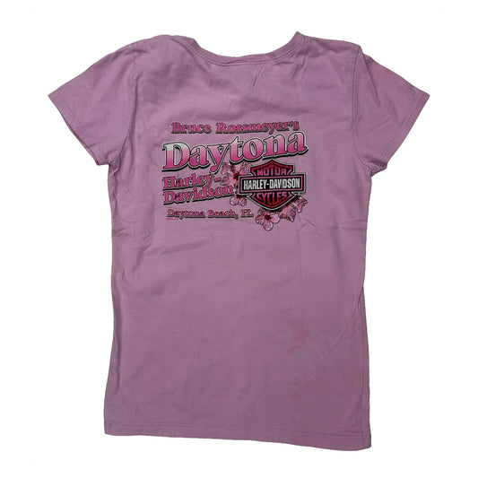 Age 10-12 Harley Davidson Graphic T-Shirt - Medium Pink Cotton