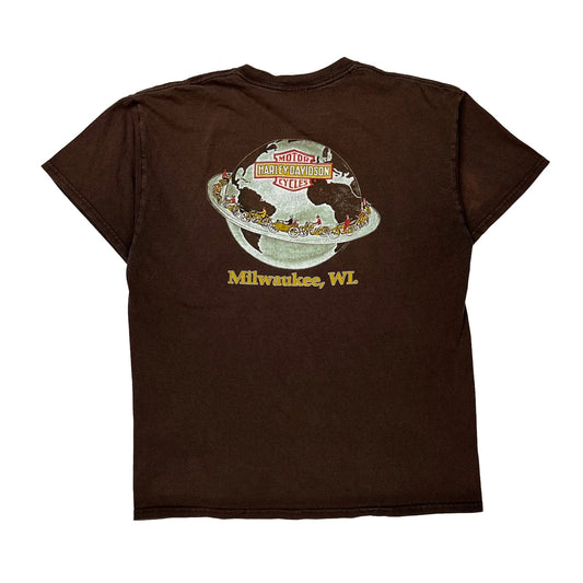 Milwaukee, Wi Harley Davidson Graphic T-Shirt - Large Brown Cotton