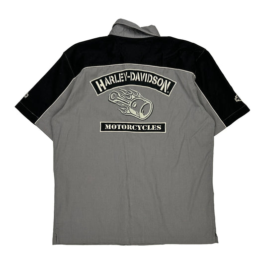 Harley Davidson Short Sleeve Shirt - Large Grey Cotton Blend