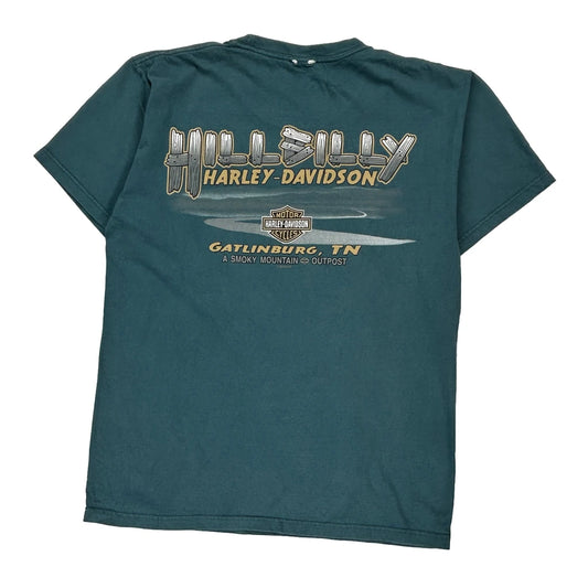 Harley Davidson Graphic T-Shirt - Medium Green Cotton