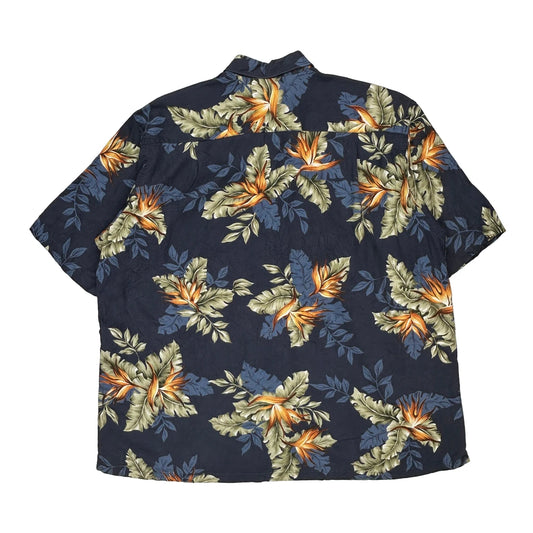 Nautica Floral Hawaiian Shirt - XL Blue Viscose Blend