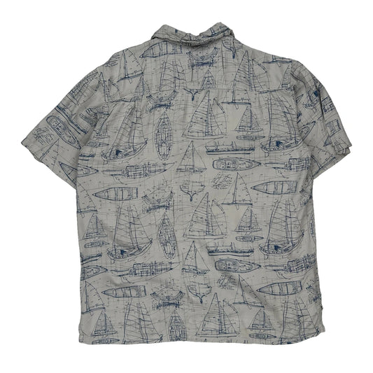 Newport Blue Graphic Hawaiian Shirt - Large White Viscose