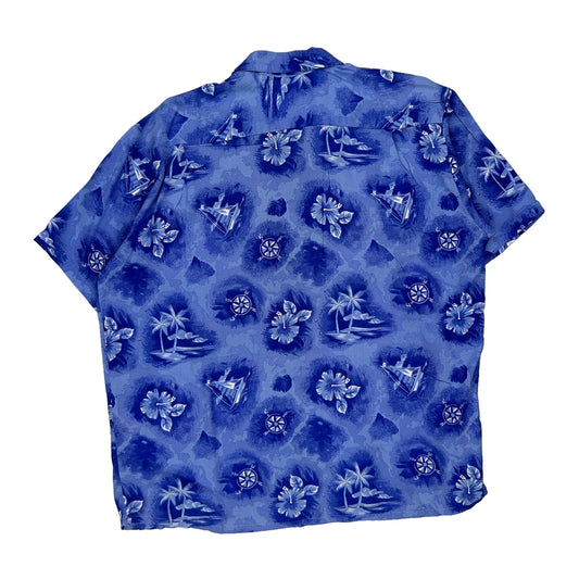 Havana Jack''S Cafe Hawaiian Shirt - Large Blue Silk