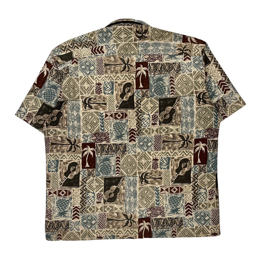 Puritan Graphic Hawaiian Shirt - Large Beige Cotton