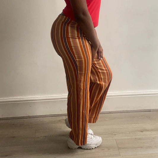 Cantarelli Striped Trousers - 31W UK 12 Orange Linen Blend