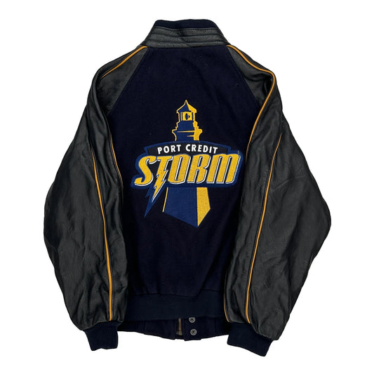 Port Credit Storm V Line Varsity Jacket - XL Black Leather