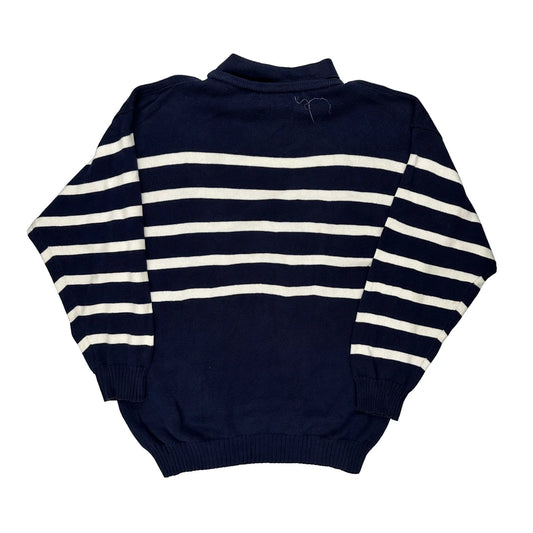 Christian Dior Striped Rugby Shirt - Medium Navy Cotton