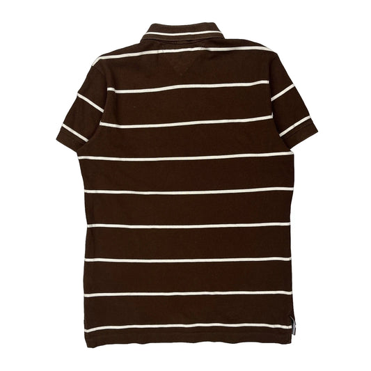Tommy Hilfiger Striped Polo Shirt - Small Brown Cotton