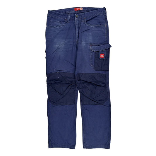 Hard Yakka Double Knee Cargo Trousers - 34W 32L Blue Cotton