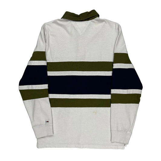 Tommy Jeans Striped Rugby Shirt - Small Green Cotton