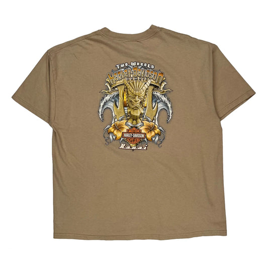 Two Wheels Harley Davidson Graphic T-Shirt - XL Beige Cotton