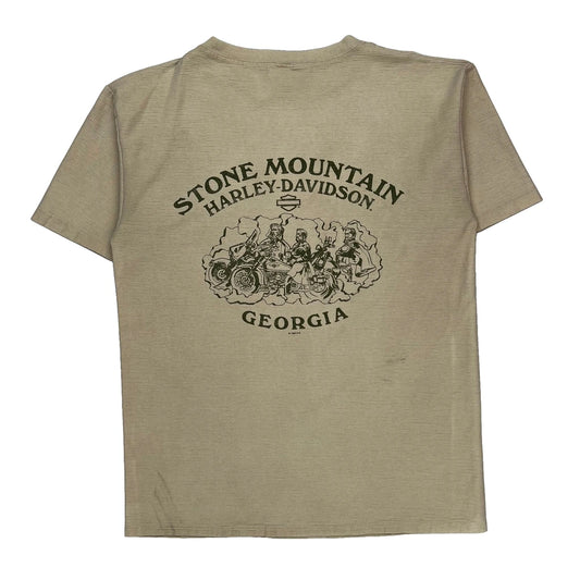 Stone Mountain Georgia Harley Davidson Graphic T-Shirt - Large Beige Cotton