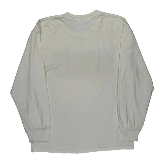 Made In USA Guess Spellout Long Sleeve T-Shirt - XL White Cotton