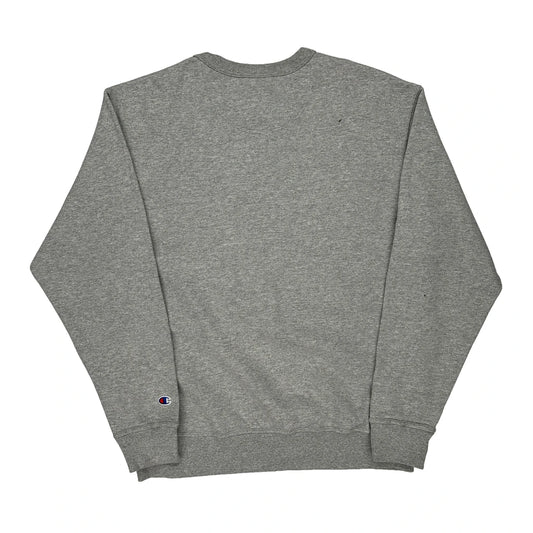 Champion Spellout Sweatshirt - Large Grey Cotton Blend