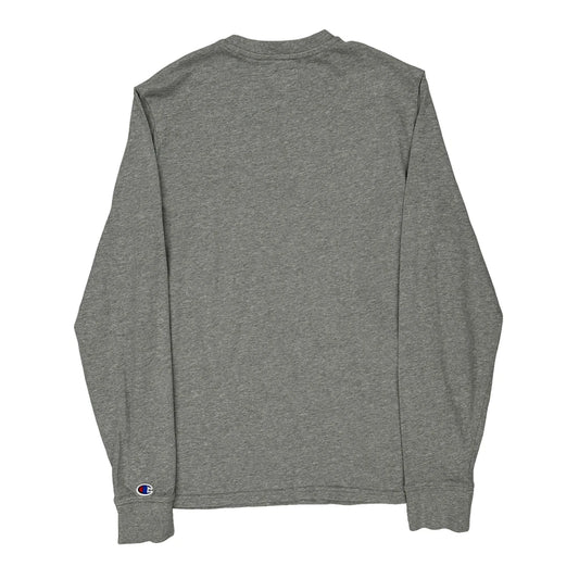 Champion Spellout Long Sleeve T-Shirt - Small Grey Cotton
