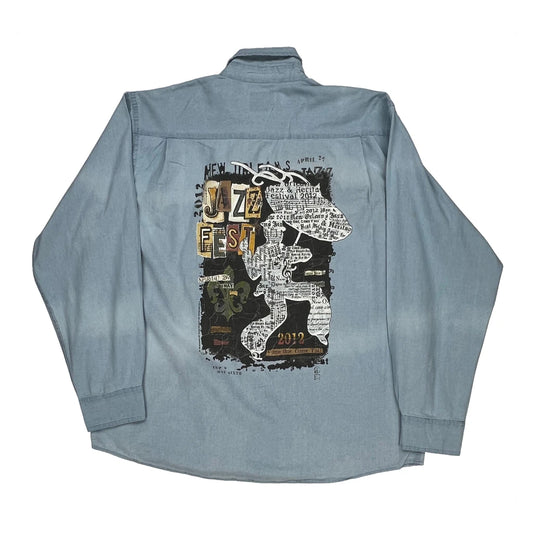 Jazz Fest 2012 Wrangler Graphic Denim Shirt - XL Light Wash Cotton