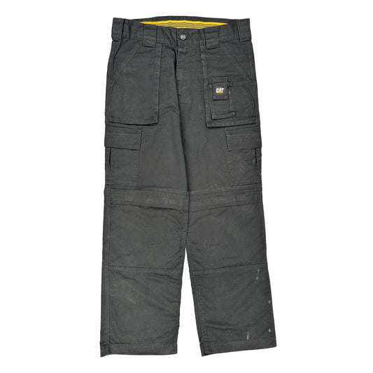 Cat Double Knee Cargo Trousers - 34W 32L Black Cotton