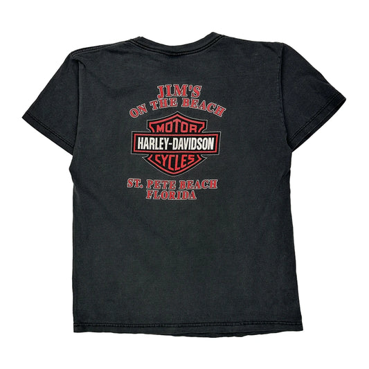 Jim'S On The Beach Harley Davidson Graphic T-Shirt - Large Black Cotton