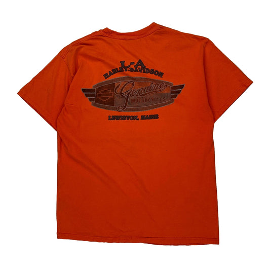 Harley Davidson Graphic T-Shirt - Large Orange Cotton