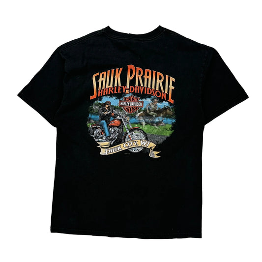 Sauk Prairie Harley Davidson Graphic T-Shirt - Large Black Cotton