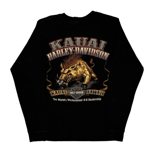 Kauai Hawaii Harley Davidson Graphic Long Sleeve T-Shirt - Small Black Cotton