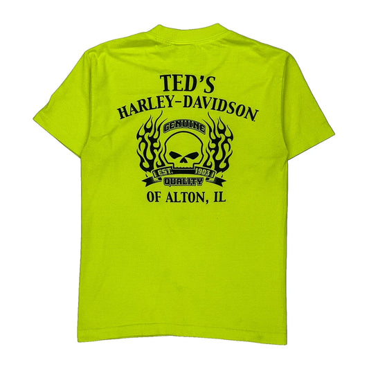 Harley Davidson Graphic T-Shirt - Small Yellow Cotton Blend