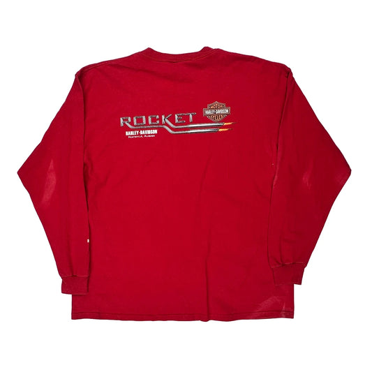 Rocket Harley Davidson Graphic Long Sleeve T-Shirt - XL Red Cotton