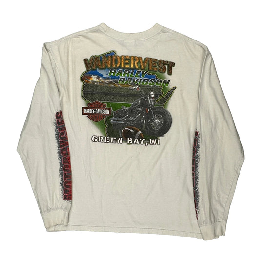Harley Davidson Graphic Long Sleeve T-Shirt - XL White Cotton