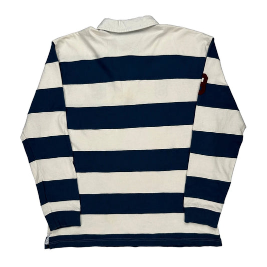 Polo By Ralph Lauren Striped Rugby Shirt - Large Navy Cotton