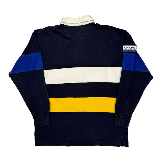 Chaps Ralph Lauren Striped Rugby Shirt - Large Blue Cotton