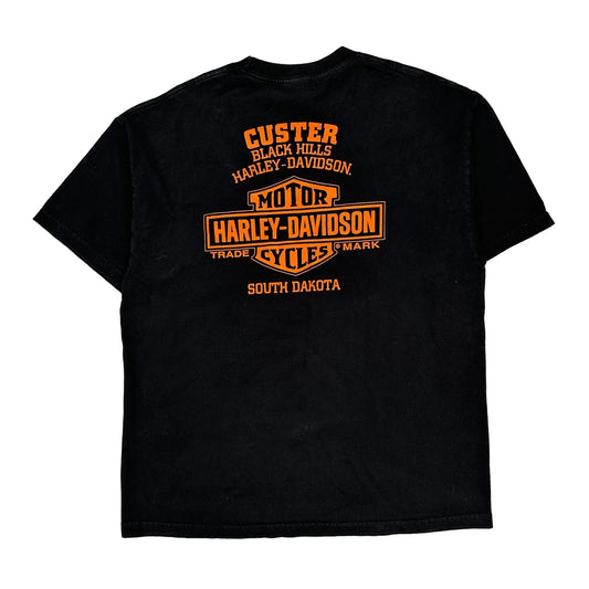 Custer Black Hills South Dakota Harley Davidson Graphic T-Shirt - Large Black Cotton