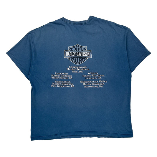 York Open House Harley Davidson Graphic T-Shirt - 2XL Blue Cotton