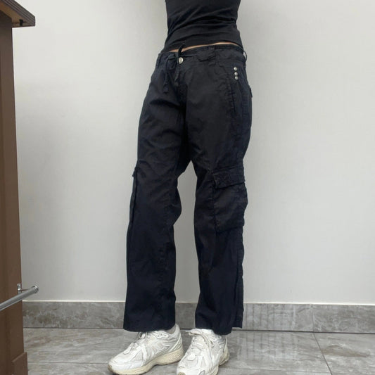 Nadia Fassi Cargo Trousers - 30W UK 8 Black Cotton