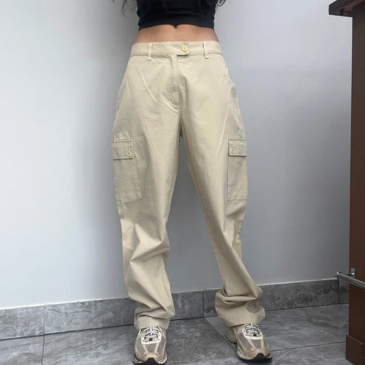 Sisley Cargo Trousers - 34W UK 14 Beige Cotton