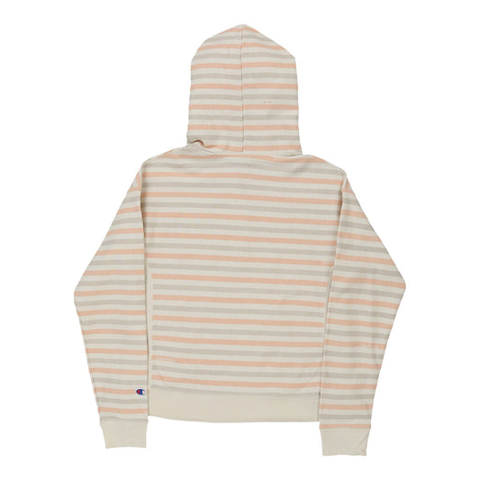 Reverse Weave Champion Striped Hoodie - Small Cream Cotton Blend