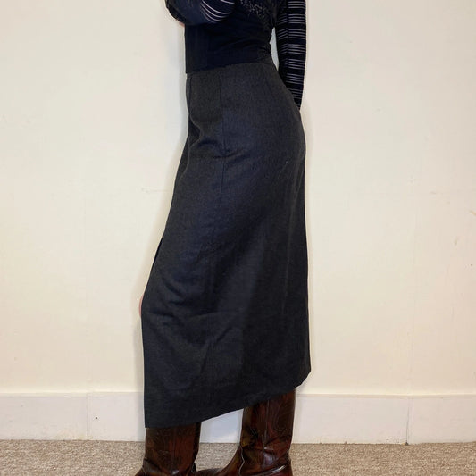 La Madeleine Maxi Skirt - 29W UK 10 Grey Wool Blend