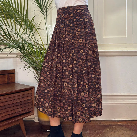 Unbranded Floral Pleated Skirt - 26W UK 6 Brown Viscose Blend