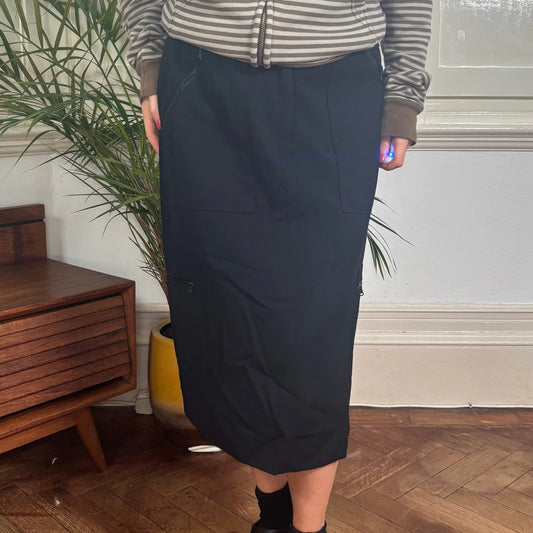 Seventy Cargo Midi Skirt - 30W UK 10 Black Wool Blend