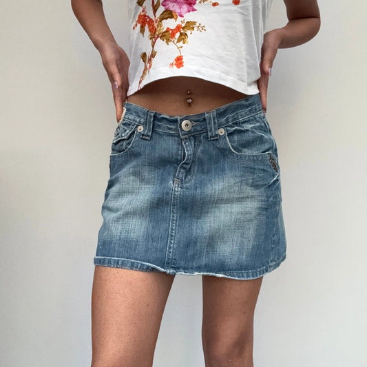 Yes Miss Mini Denim Skirt - 30W UK 10 Blue Cotton