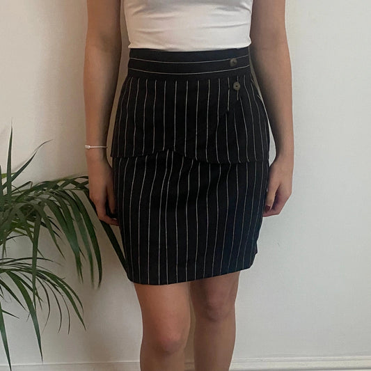 The End Striped Mini Skirt - 26W UK 6 Black Cotton