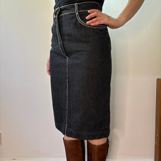 Les Copains Midi Denim Skirt - 26W UK 6 Black Cotton